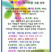 | 아산도서관 직장인 저녁 독서모임「책사랑 독서회」회원모집 (0) | 2011.06.15 |