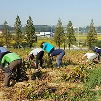 아산시 온양5동(동장 강용구)과 통장협의회(협의회장 신종우)는 지역 복지 향상을 위해 지난 8일 고구마 수확 작업을 실시했다. 이 날 작업에는 통장협의회원 및 온양5동·평생학습관 직원 약 30여명이 참여해 지난 5월 초부터 신인동 유휴지(약 1500㎡)에 모종 4,500개 가량을 심고 가꾼 고구마를 수확했다.